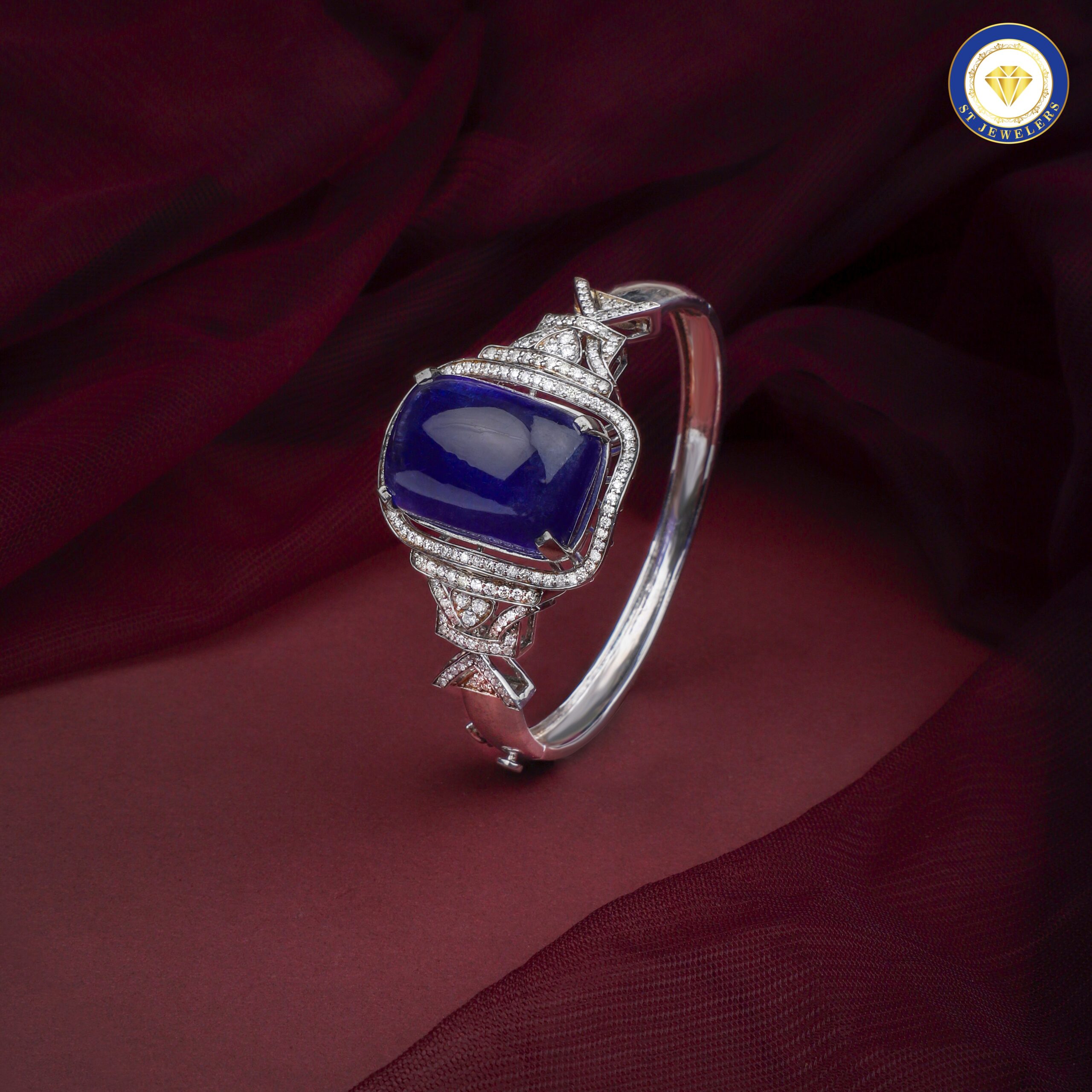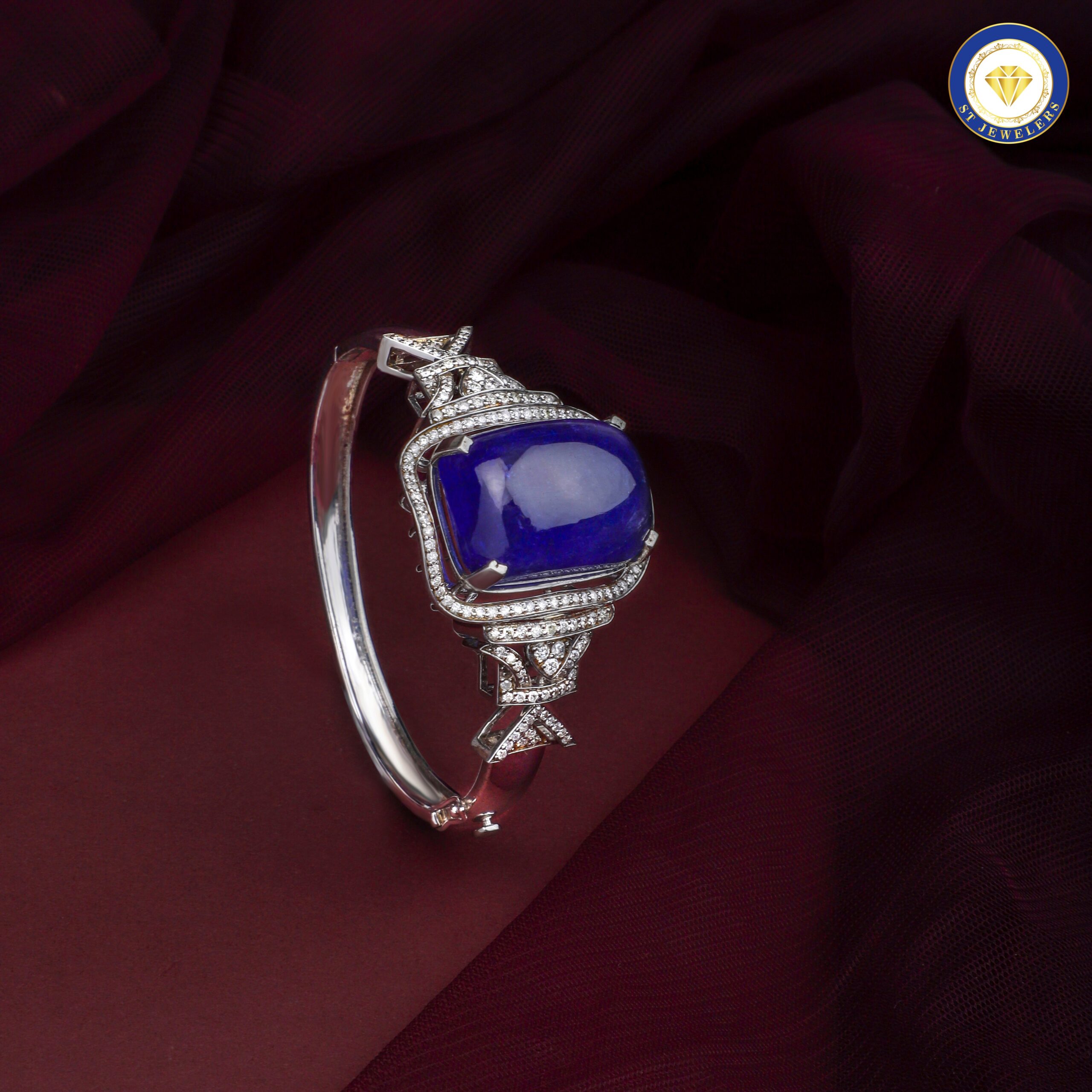 The Vintage Blue Bracelet showcases the captivating beauty of natural tanzanite stones paired with sparkling natural diamonds, all set in pure silver. Its oval openable structure (size 2.4) ensures comfortable wear while maintaining a luxurious vintage-inspired look. The deep blue hues of tanzanite create an enchanting visual contrast with the brilliance of diamonds, making this bracelet perfect for evening wear, celebratory occasions, and collectors who appreciate rare stones. It?s a refined and elegant masterpiece that adds a regal touch to any ensemble.